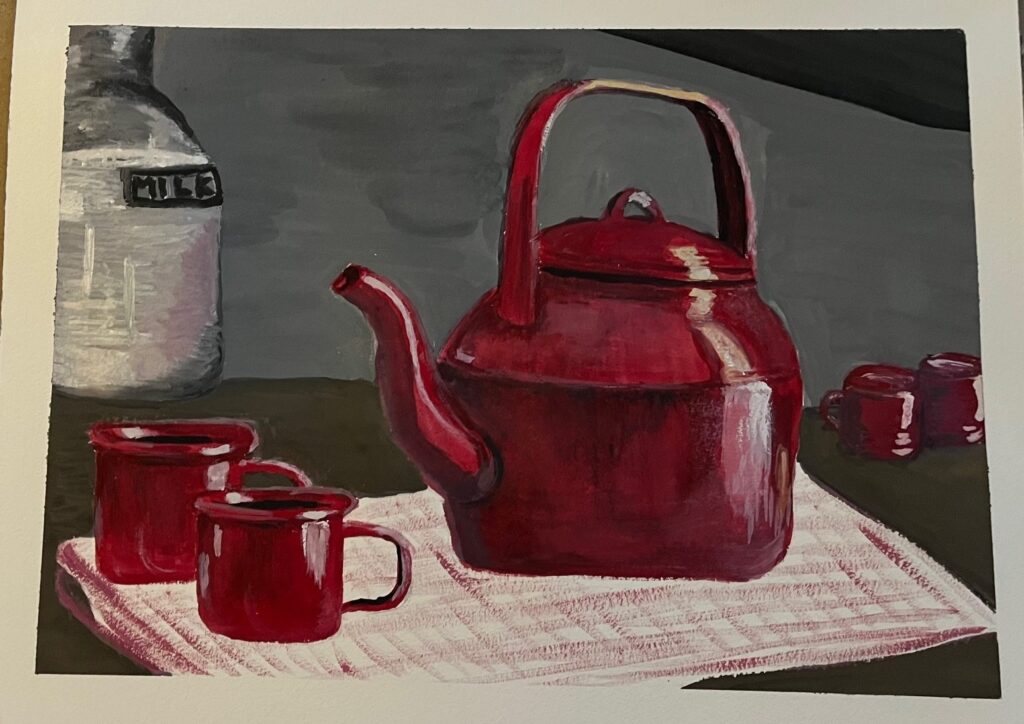 Sometimes we collaborate on a piece of work, such as our group’s name banner above or the ‘old master’ painting below.